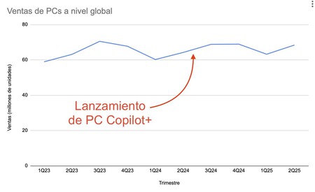 Para bien o para mal, el segmento del PC no ha sufrido grandes cambios. Ni las ventas han empezado a crecer súbitamente, ni tampoco han caído en picado. Si los PC Copilot+ querían impulsar las ventas, desde luego no han parecido conseguirlo. Pero al menos tampoco parecen haber tenido impacto negativo