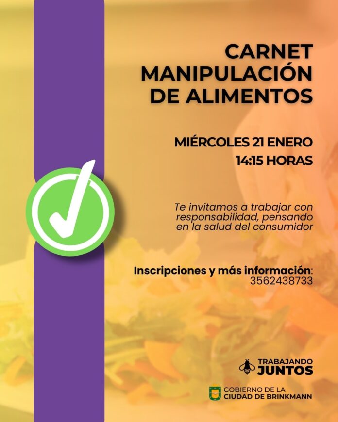 El Gobierno de la Ciudad de Brinkmann desde el área de Bromatología organiza para el miércoles 21 de enero, una nueva jornada para obtener el carné de manipulación de alimentos.