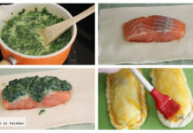 Mi relleno siempre lleva virutas de jamón y huevos cocidos. A ello le sumo un sofrito de verduras que hago con lo que tenga en la nevera en el momento de prepararlos. En esta ocasión he usado cebolla, zanahoria y brócoli, pero bien podría haber sido tomate, calabacín, coliflor o cualquier otra verdura a la que necesitara dar salida.