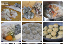También pelamos y picamos unas patatas para freírlas en otra sartén mientras hacemos el resto de las elaboraciones. Para hacer la salsa, ponemos el queso de la D.O. Cabrales en un cazo con la nata y dejamos que se funda mientras removemos con unas varillas de vez en cuando.