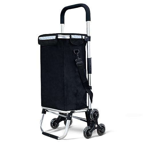 VOUNOT Carrito Compra Plegable de Aluminio, Carro de la Compra 6 Ruedas con Bolsa Impermeable Desmontable, 50L, Negro