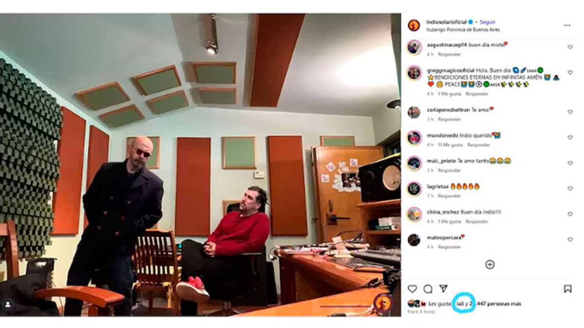 En respuesta, Lali dejó un “like” en la última publicación del músico en Instagram, donde se lo ve grabando en su estudio Luzbelo junto a Axel Lang, colaborador habitual y representante de Abbey Road.