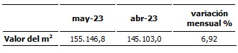 El valor del metro cuadrado en mayo fue de 155.146,8 pesos.