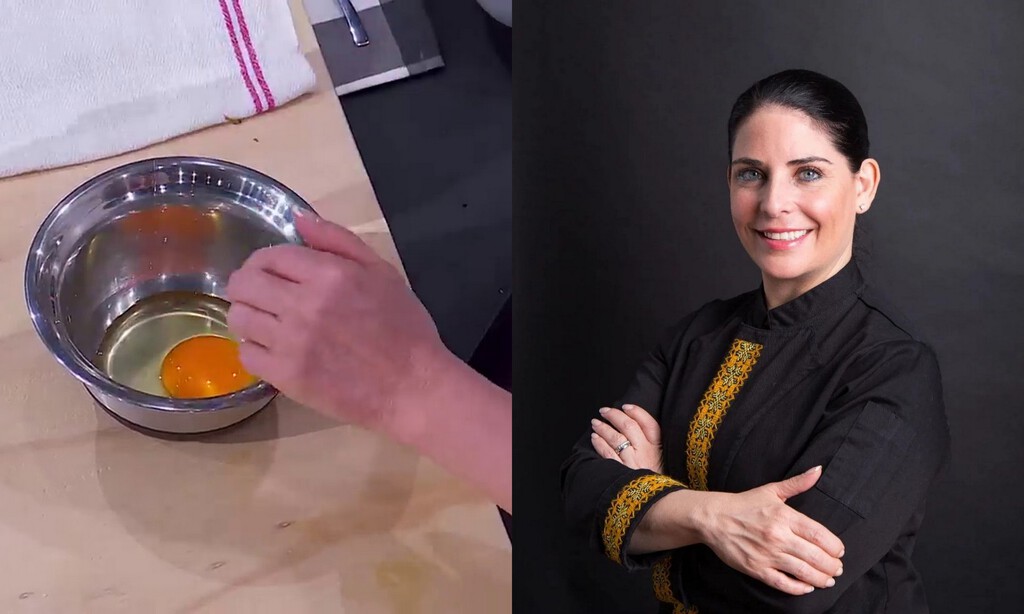 La chef también recomendó batir las claras de huevo a punto de turrón o punto de nieve, es decir, cuando se vuelven espumosas y alcanzan su mayor volumen, para lo que tendrás que batirlas fuertemente con un tenedor hasta que se formen picos que se mantengan firmes, aunque, si tienes batidora, podrás utilizarla para ahorrar tiempo y esfuerzo.