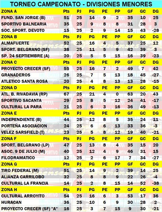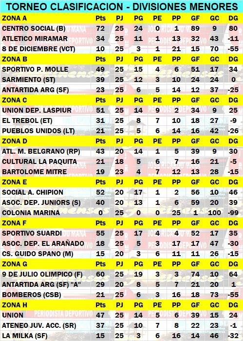 RESULTADOS Y POSICIONES TORNEO CAMPEOANTO Y TORNEO CLASIFICATORIO