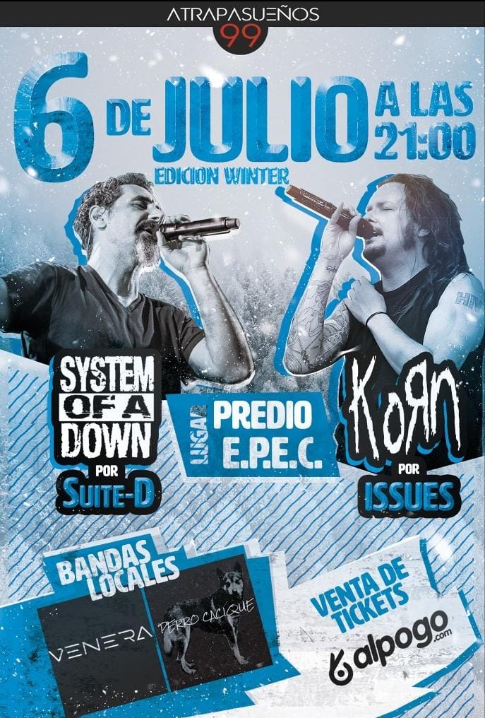 Este Sábado 6 Julio a las 21 hs. En el predio de Epec en la ciudad de San Francisco,Córdoba. Para romper el hielo, las siguientes bandas que los acompañaran son: @suite.d.soad (Santa Fé) @issues.cba (Cba + Jesus Maria) @venerabanda (San Fco) @perrocacique.banda (San Fco) Podés sacar tu anticipada a $6500 en alpogo.com o podrás conseguir …]]> Este Sábado 6 Julio a las 21 hs. En el predio de Epec en la ciudad de San Francisco,Córdoba. Para romper el hielo, las siguientes bandas que los acompañaran son:
