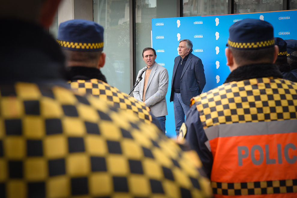 El ministro de Gobierno y Seguridad, Julián López, y el secretario de Seguridad, Claudio Satampalija, entregaron 20 nuevos móviles para la Policía Caminera en el marco del fortalecimiento del accionar de la fuerza en su 15 aniversario.
