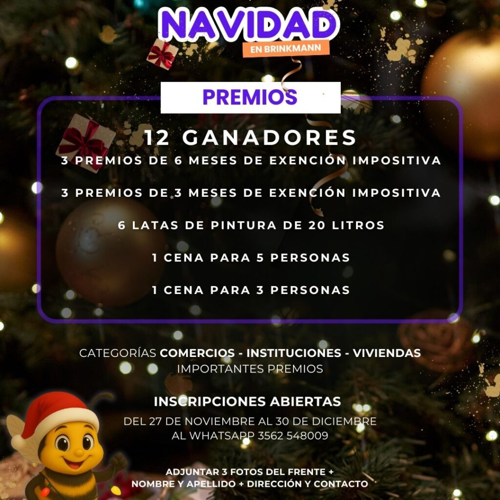 El Gobierno Municipal de Brinkmann recuerda que está vigente el Concurso de Vidrieras y Frentes Navideños, con importantes premios para los ganadores.