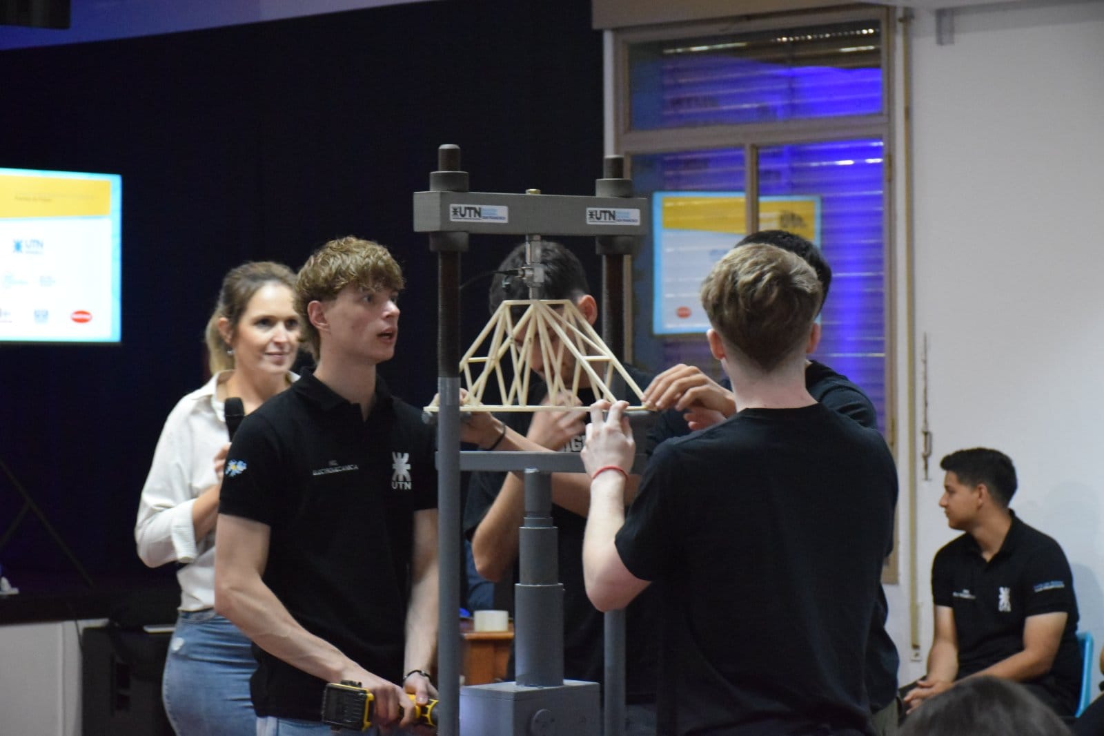 Durante la jornada se vivió un clima de entusiasmo y colaboración entre los participantes, docentes y público que siguieron con atención cada prueba de carga. Los puentes debían cumplir con exigentes condiciones: pesar menos de 500 gramos y romperse al alcanzar los 50 kilos de carga.