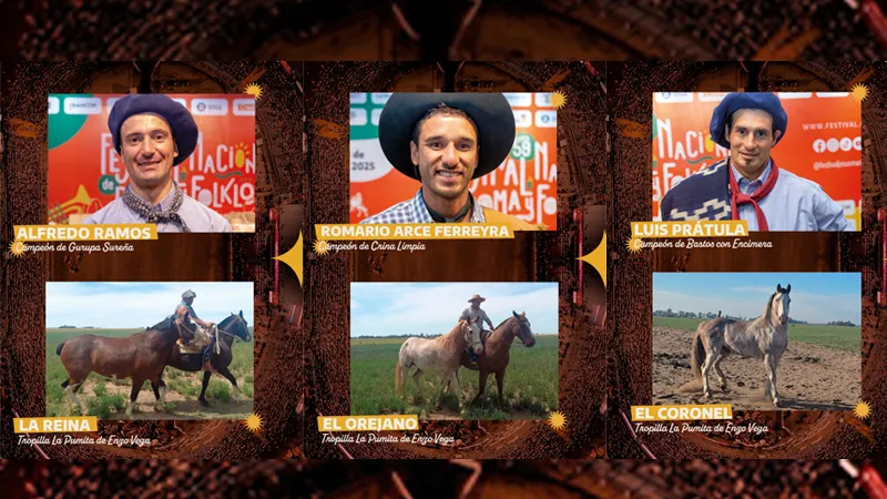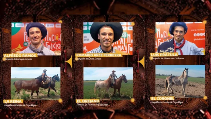 INTERIOR Tres montas especiales abrirán la noche del jueves en el Festival de Doma y Folklore Por admin - diciembre 16, 2025 0 27 Compartir en Facebook Compartir en Twitter Luis Prátula, Campeón de Basto con Encimera, montará El Coronel; Tato Ramos, Campeón de Gurupa Surera, se medirá con La Reina; y el brasileño Romário Arce, Campeón de Crina Limpia, completará la grilla sobre El Orejano. 16 de diciembre de 2025
