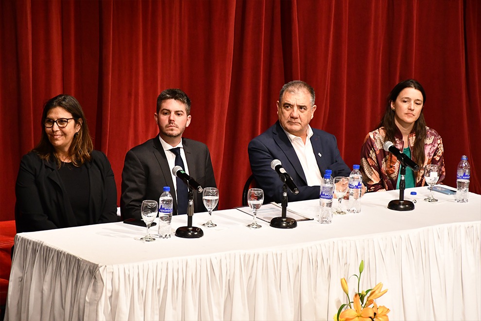 Estuvieron presentes en el acto, entre otras autoridades, l secretaria de Extensión de la UPC Mariela Edelstein; la secretaria de Coordinación de la UPC María Laura Chauvet; la directora General de Capacitación y Difusión de los DD.HH. en la Comunidad Tamara Pez y el director del Espacio para la Memoria Campo de La Ribera Samir Juri.